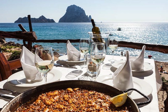 Czy nie byłoby cudownie zjeść obiad lub kolacje albo wypić kawę lub drinka z widokiem na Es Vedre? Byłoby !! A na Ibizie jest to możliwe. Bo tutaj wszystko jest stworzone z myślą kultowania pięknych chwil w życiu. Naszym top 1 jest zdecydowanie restauracja Es Boldado. Położona na pólkach skalnych, niedaleko plaży Cala d’Hort. Aby tu dojechać, musimy skręcić w nieasfaltowaną drogę i przejechać przez lasek sosnowy. Jadąc pierwszy raz tą drogą z pewnością będziesz się zastanawiać czy przypadkiem się nie pomyliłeś. Można się tutaj również dostać drogą morką wynajętą łódką. Restauracja ma miejsce do zacumowania łodzi. Na wspomnianej plaży Cala d”hort również znajdują się dwie restauracje. Restauracja El Carmen z przepięknym centralnym widokiem na Es Vedre, podobnie jak Es Boldado specjalizuje się w kuchni Ibiziańskiej. Zjesz tutaj pyszne dania ze świeżych ryb oraz owoców morza. Jest ona prowadzona przez miejscową rodzinę. Pamiętaj, że są to bardzo oblegane miejsca, w szczególności latem. Koniecznie zarezerwuj sobie stolik.