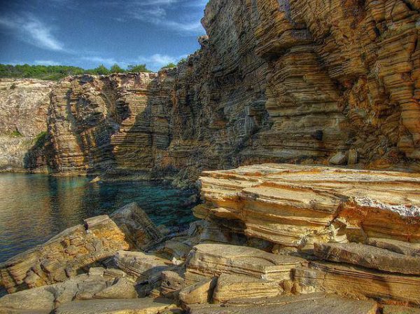 Here we will certainly not find a sandy coastline. Punta Galera is a place built from massive rock formations. The stone slabs form ledges, on which many people sunbathe naked. It is one of the more popular places for nudists on Ibiza, and also one of the more spectacular spots on the island. Here you will find many small underwater caves inhabited by colourful fish, octopuses and other creatures living in the Mediterranean Sea. Most of the bottom of the bay Punta Galera is overgrown with lusciously green seagrass – Poseidonia oceanica. This is another attraction for snorkeling enthusiasts.
