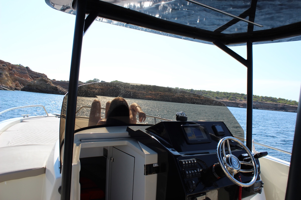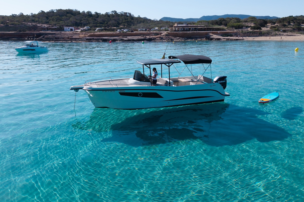 Come aboard and enjoy Full Day or Half Day Astilux 900SD Boat Rental with your family or friends! During your boat day, you will discover one of the most beautiful coasts of Ibiza.