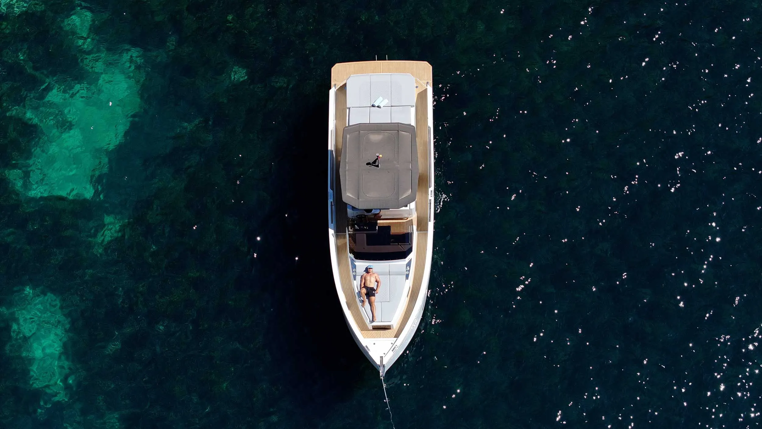 Book your full day boat charter in Ibiza from San Antonio on our luxurious De Antonio 36. Up to 11 guests plus captain. Fuel included. Visit Es Vedrà, Formentera, or explore Ibiza’s stunning west coast with stops at Cala Bassa and Cala Conta for an unforgettable day on the water.