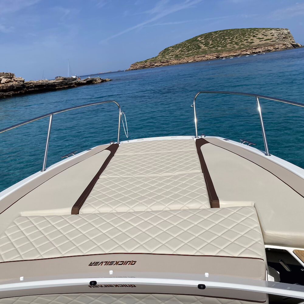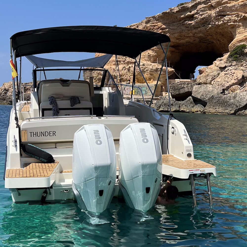 Book your full day boat charter in Ibiza from San Antonio. Captain and fuel are included. Explore Es Vedrà, Formentera, or Ibiza’s west coast with Cala Bassa and Cala Conta for an amazing day at sea.